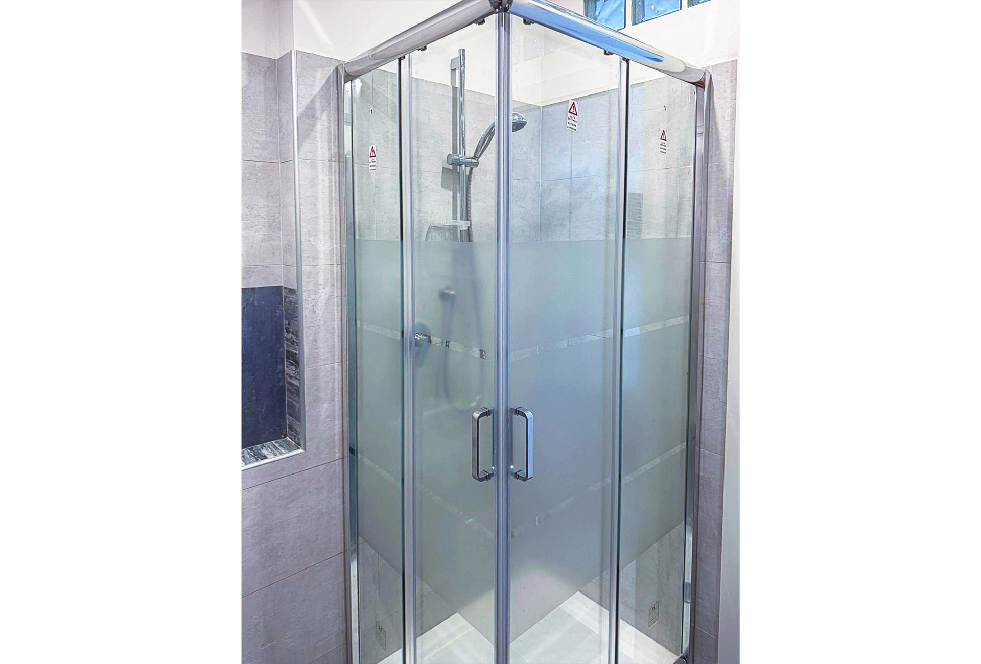 Bellissimo design con arredi moderni tra cui un'affascinante vetrata con vista privata.